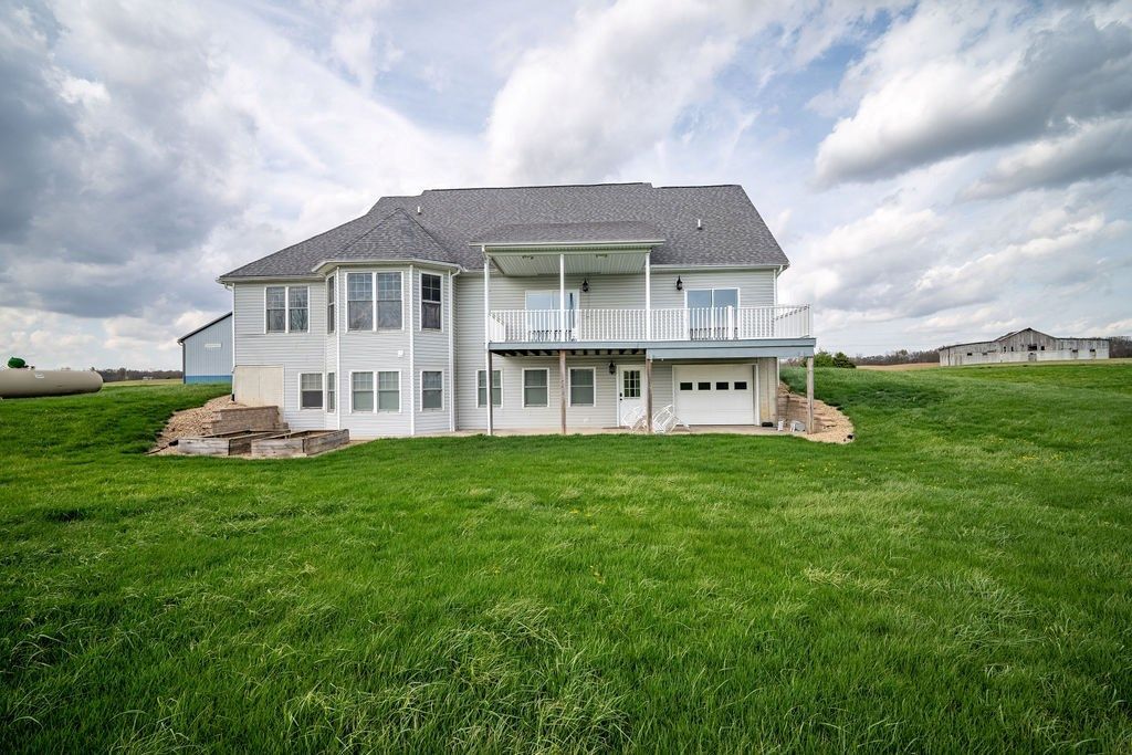 Easy Access to 1-71 located in Highland Schools. 5 bed 3 bath w/attached & detached Garages. 1st Flr Master Suite w/fully renovated ensuite bath w/luxurious tile, custom vanity & glass walkin shower. Large walkin closet has been refinished with built in cabinetry. 1st flr hall bath has been beautifully refinished w/custom ceramic tile & vanity. 1st Flr Laundry w/updated ceramic tile floors. Fully finished lower level walks out to covered Patio. Updates Include: Granite Counters 2024, Beautiful Wide Plank Hardwood Flooring Throughout the 1st & 2nd Flr 2025, Lighting 2024 & 2025, Fresh Paint Throughout, Carpet in basement 2022, Barn 2021, Roof 2017, Central Heating & Cooling System 2024 & Blown in Insulation & Air Seal 2024. Paved Driveway 2025. New Kitchen Appliances are negotiable 2025. Vaulted Great Rm w/attached covered deck. 40x48 heated Barn has 16' ceilings w/3 garage doors (14x12, 10x12, 10x10 w/openers). Radiant in floor heat w/insulated foam, 16'ceiling. See A2A Remarks.